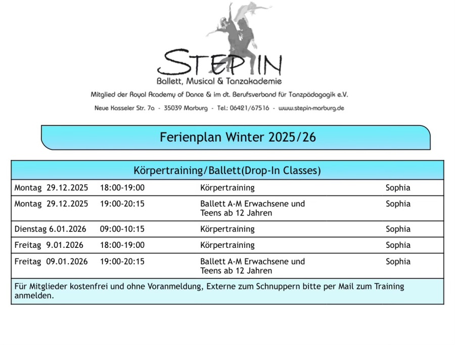 ... in der Ballett-, Musical- und Tanzakademie STEP IN in Marburg.