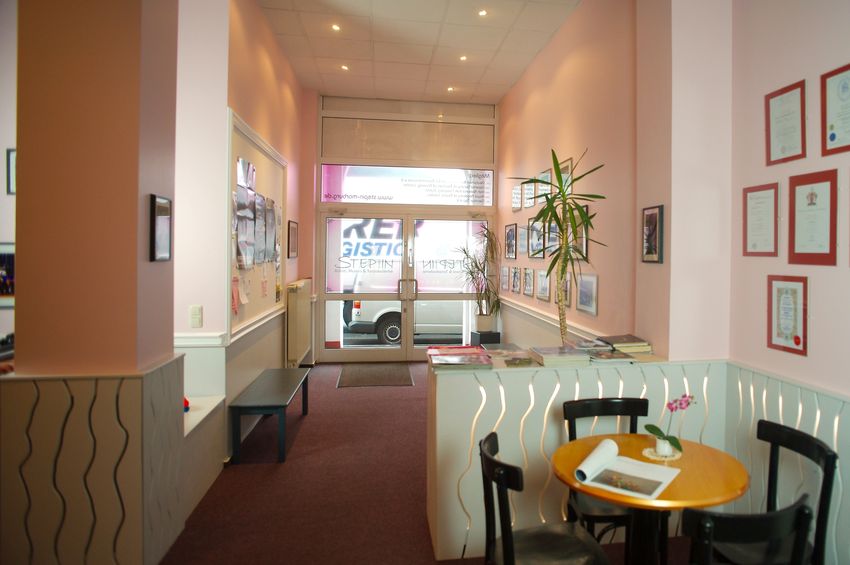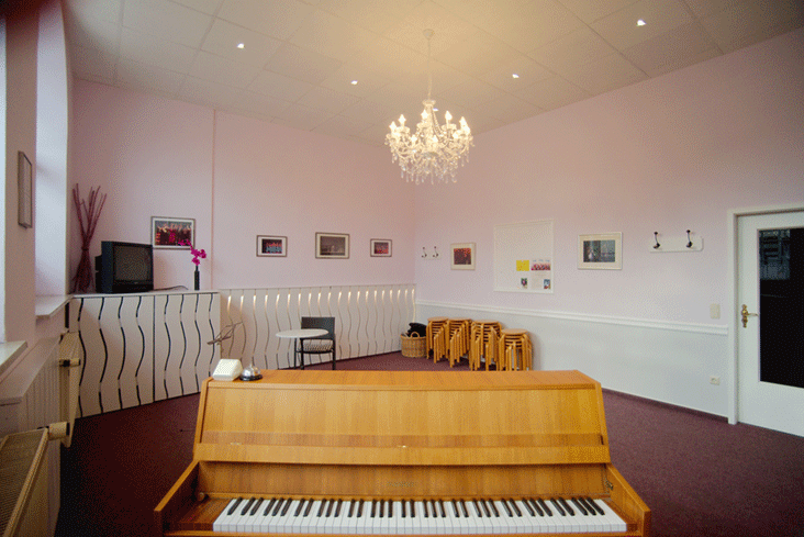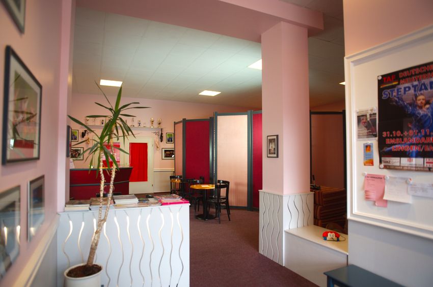 Im Step In befinden sich zwei große, helle Tanzsäle mit Spiegelwand, Ballettstangen und Schwingboden, ein großer Musikraum mit Piano sowie eine geräumige Garderobe/Umkleide mit Spinden. Im großzügigen, gemütlichen Eingangsbereich laden Tische und Stühle vor und nach den Unterrichtsstunden zum Verweilen ein.